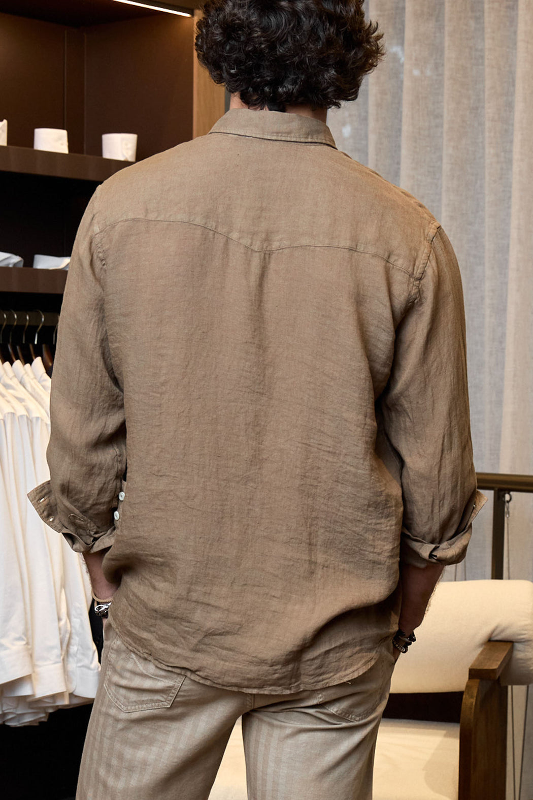 brown linen shirt