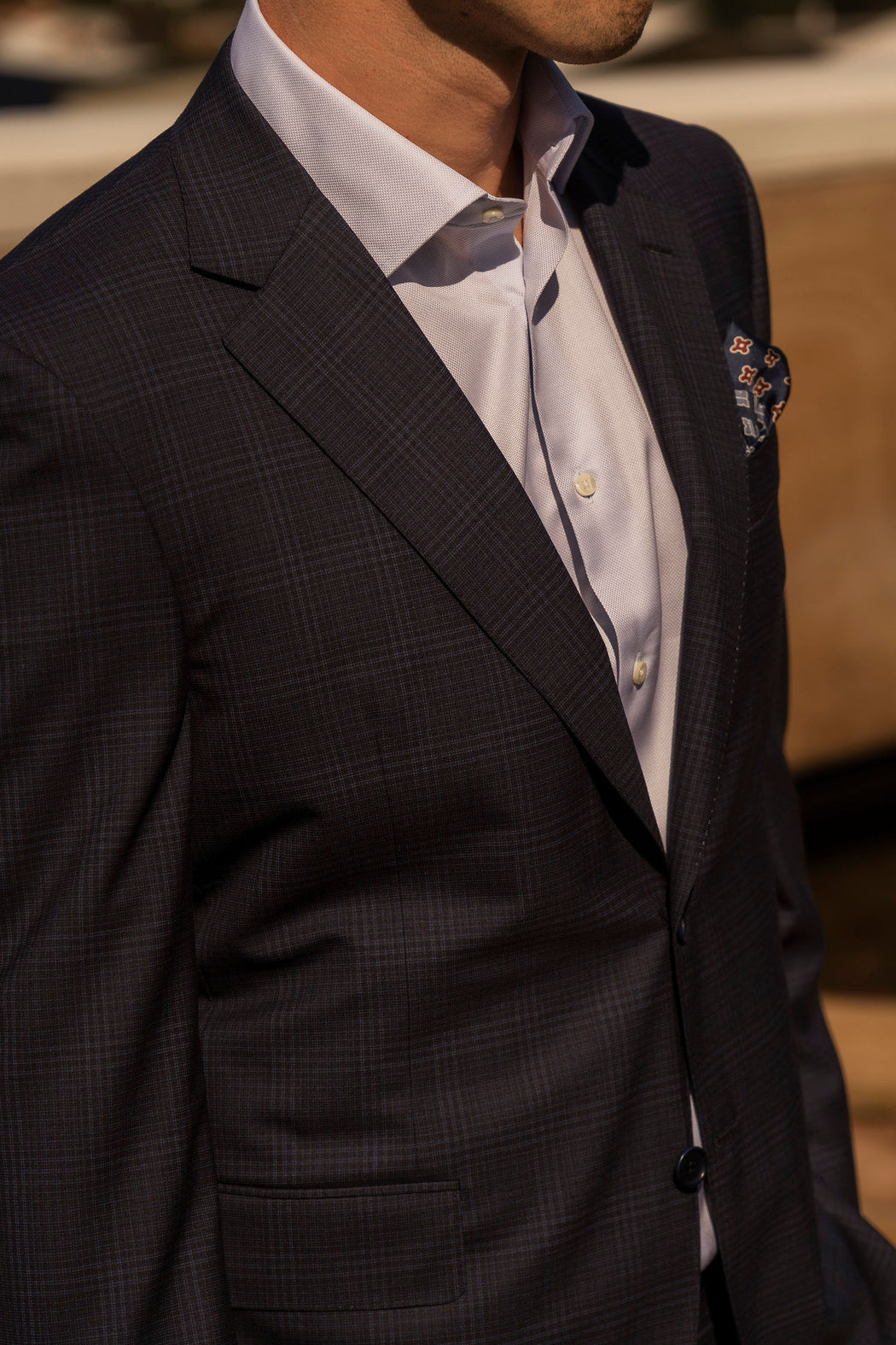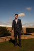 navy multi-line check suit