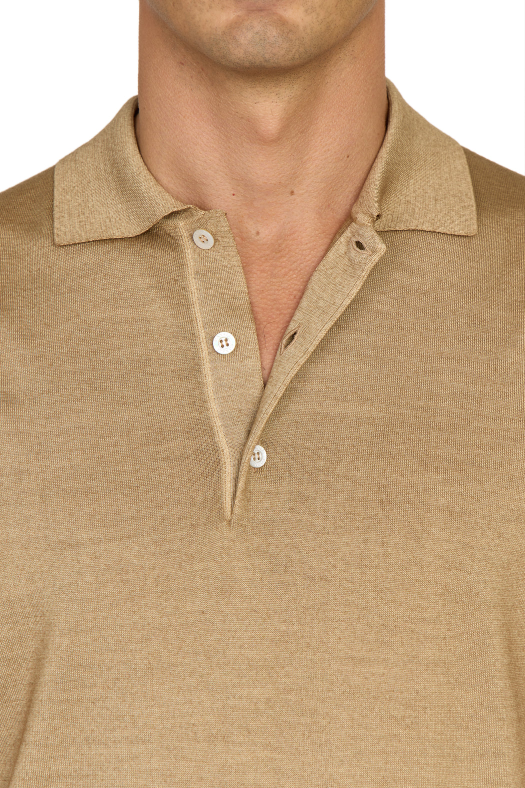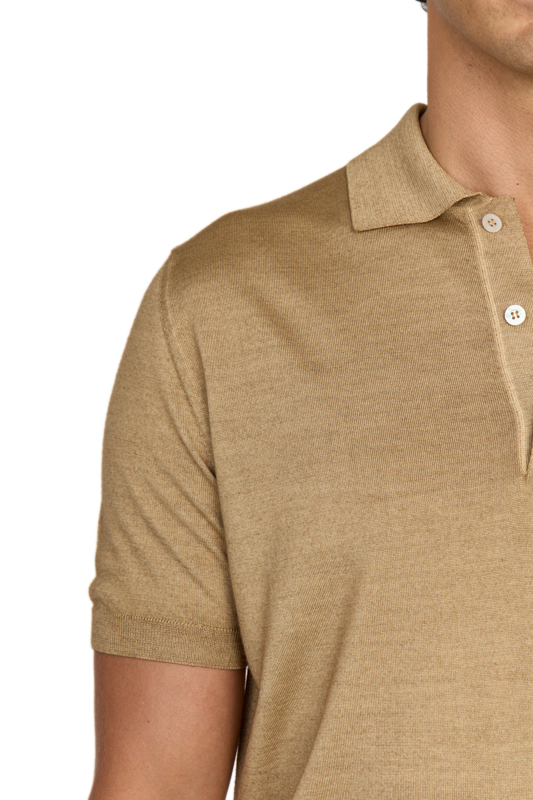 tan wool-silk knitted polo