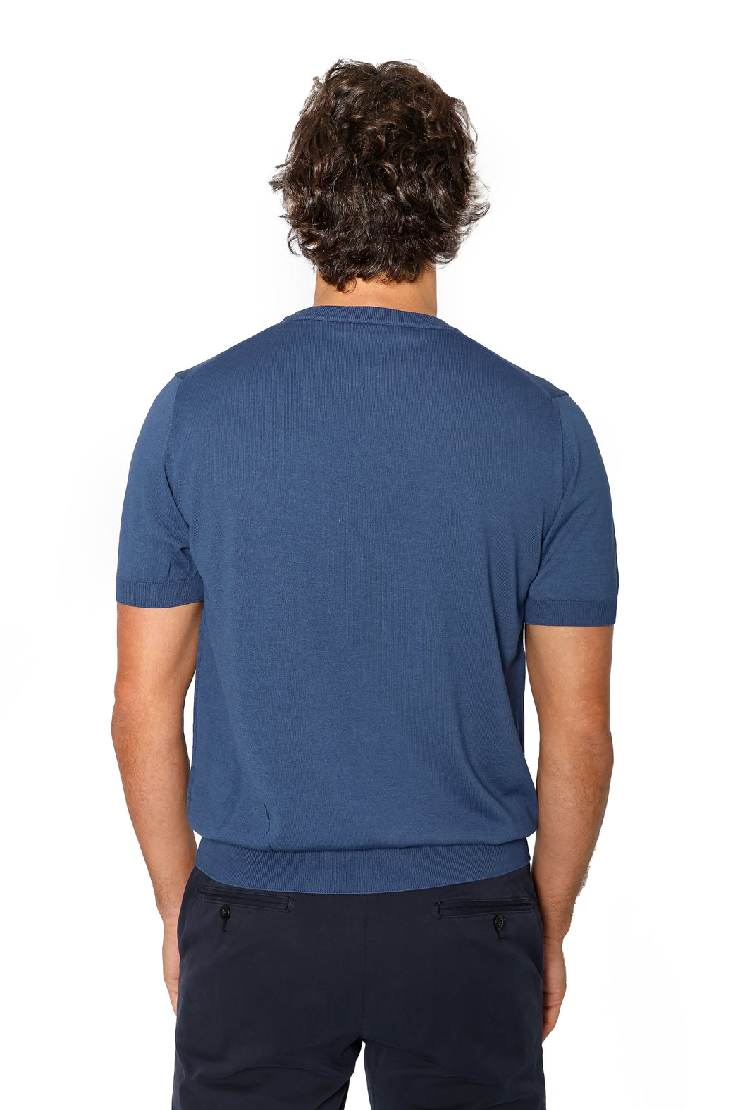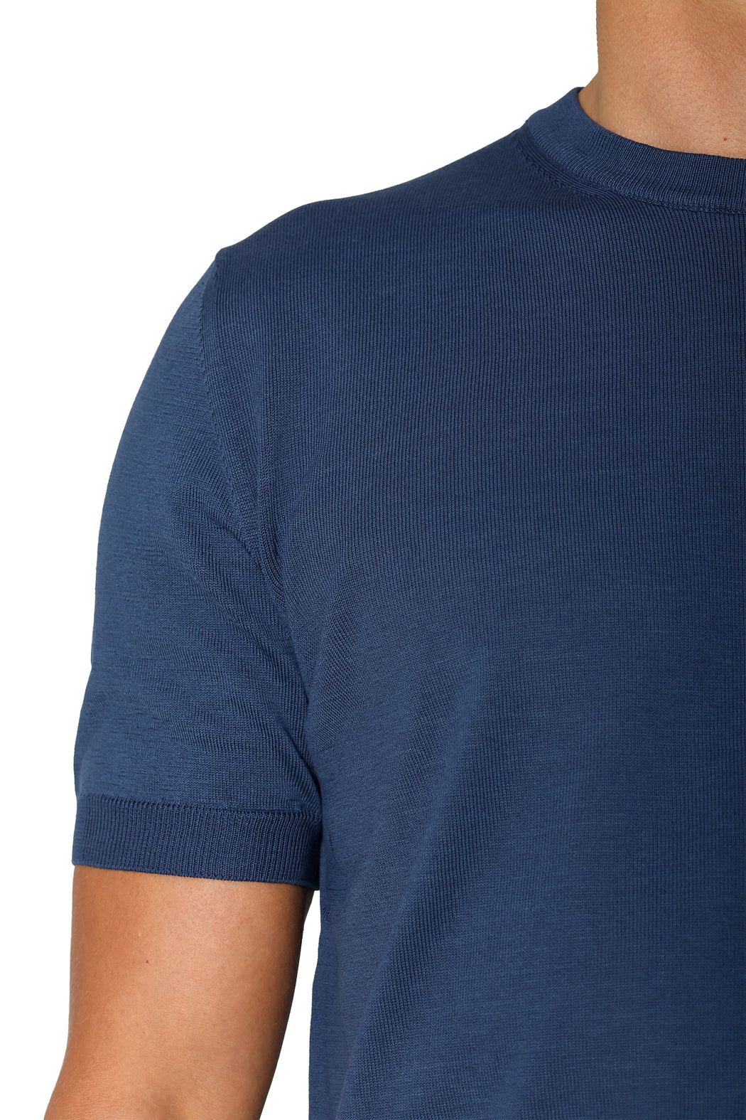 blue knitted crew neck cotton t-shirt