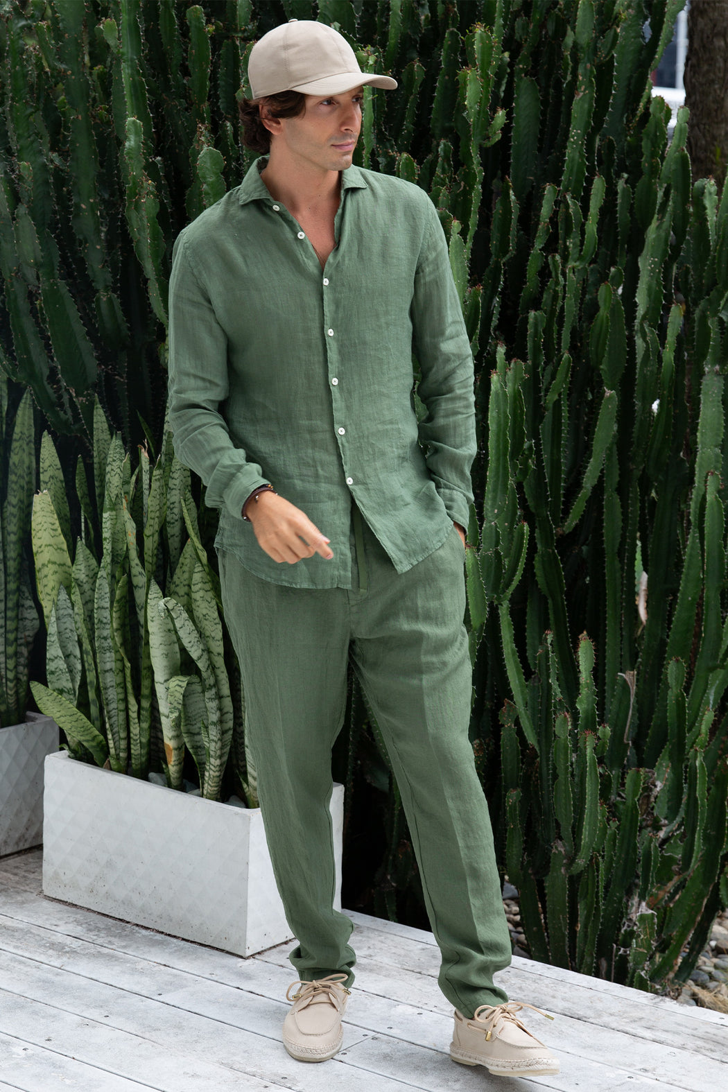 green linen shirt